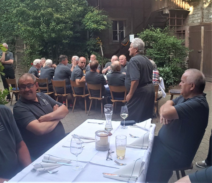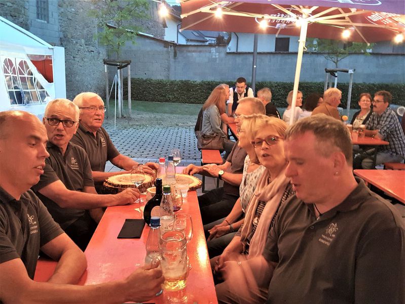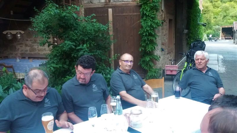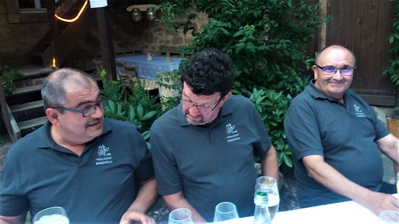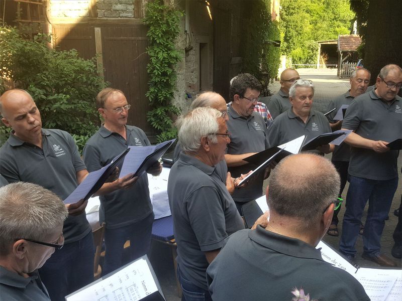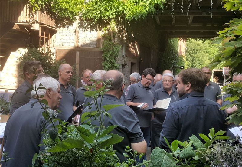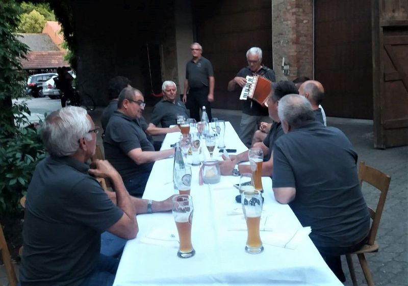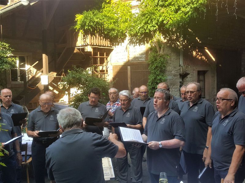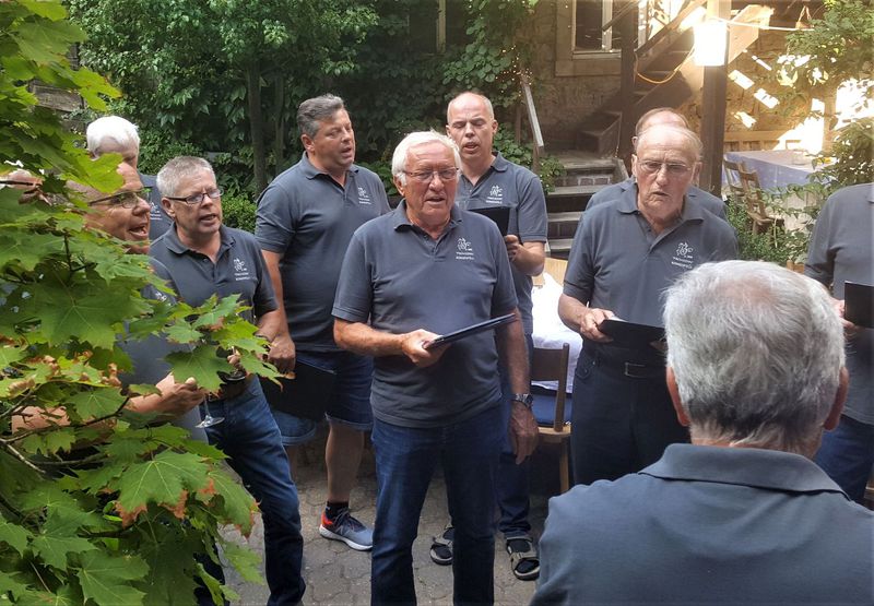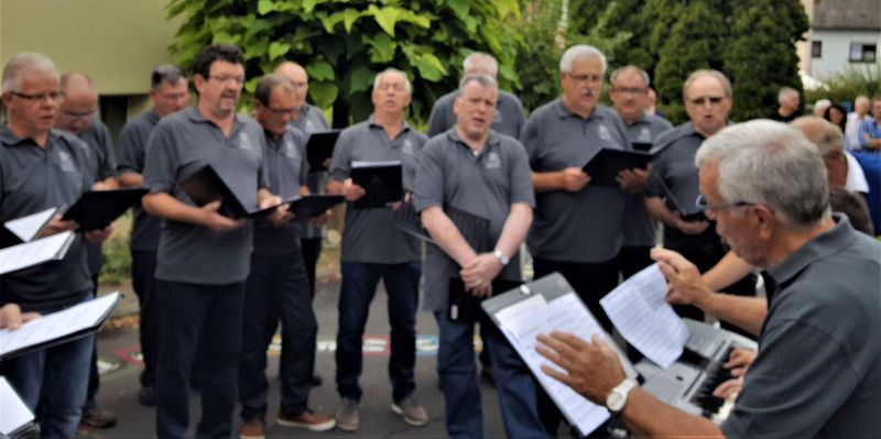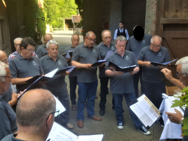 7. Juli 2018 - Eine große Sängerschar hatte sich für ein Geburtstagsständchen anlässlich des runden Geburtstags unseres Sängers und Ehrenmitglieds Peter Frank im Innenhof des Gasthauses "Zum Lamm" in Billingshausen eingefunden und erfreuten den Jubilar und seine Gäste mit den Liedern: Fränkische Heimat, Ich höre ein Lied im Winde weh´n, Nimm dir Zeit. Ein Lied zieht hinaus in die Welt, Er lebe hoch und Auf das Leben". Danach lud uns Peter zu Essen und Trinken ein, wofür wir uns herzlich bedankten.