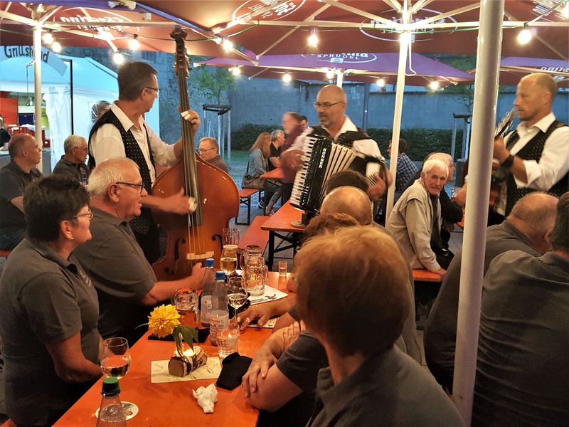 Mit dem Bus machten sich die Sänger und zahlreiche Ehefrauen auf nach Retzstadt und nahmen am Sängerfest des MGV Retzstadt teil. Beim Platzsingen am Kindergarten trug der Chor 3 Lieder vor: "Fränkische Heimat", "Auf das Leben" und "Ein Lied zieht hinaus in die Welt"